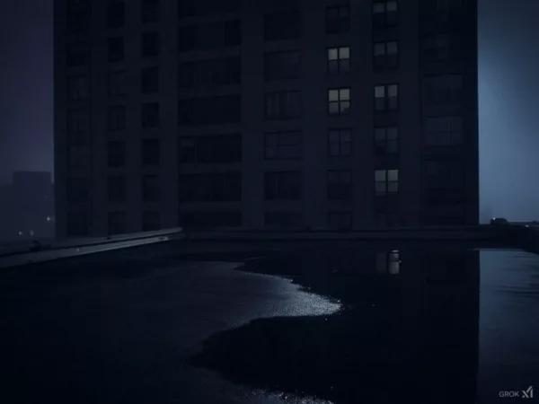 어느 날 나는 용기를 내어 소리가 가장 크게 들리는 옥상으로 올라갔다. 그곳에서 나는 충격적인 광경을 목격했다. 옥상 한가운데에는 검은 물웅덩이가 있었다. 그 물웅덩이는 마치 살아있는 것처럼 꿈틀거렸다.
